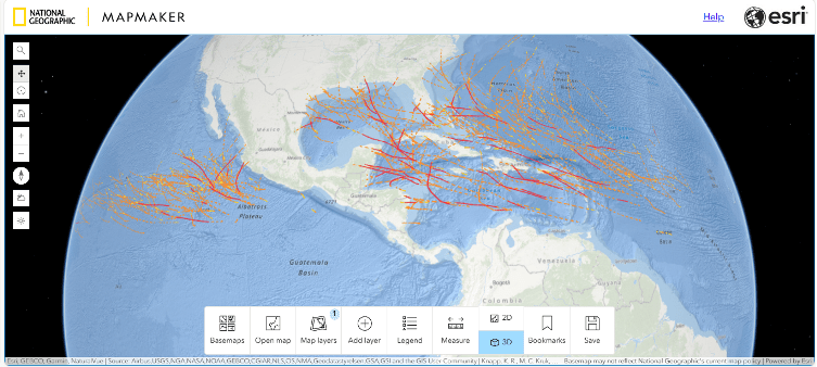 En el geovisor MapMaker de la National Geographic se pueden visualizar varios layers sobre huracanes y otros eventos
