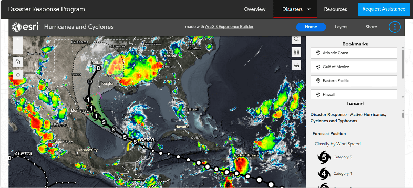 Visor global de huracanes del programa de respuesta ante desastres de ESRI