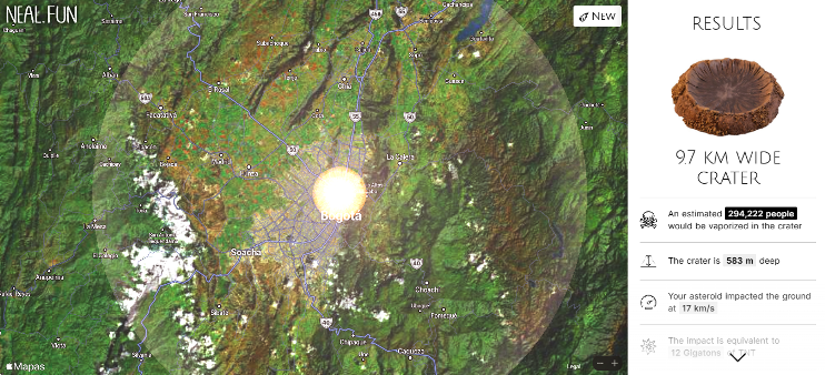 Simulador de impacto de un asteroide. Creado por Neal Agarwal