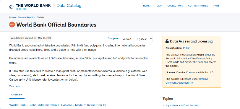 El World Bank dispone entre su catálogo de datos las divisiones oficiales nacionales y subnacionales