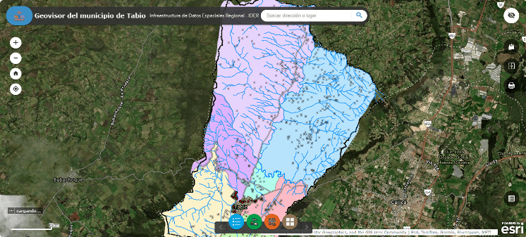 Geovisor de la Infraestructura de Datos Espaciales Regional, IDER, para el Municipio de Tabio