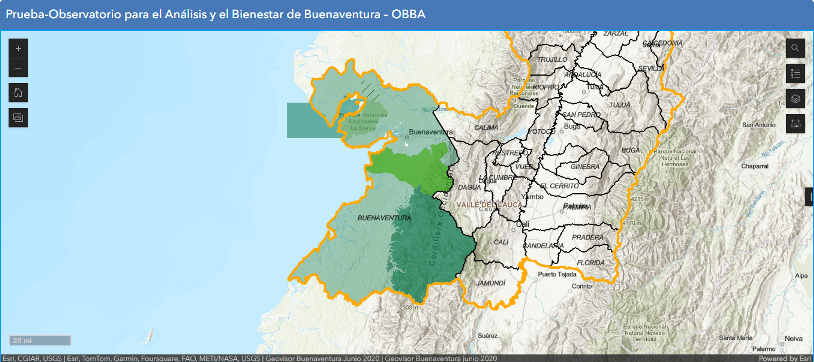 El Geovisor del Observatorio para el Análisis y el Bienestar de Buenaventura – OBBA, es un desarrollo del Instituto de Estudios Interculturales de la Universidad Javeriana, Cali, y la Cámara de Comercio de Buenaventura. La plataforma hace parte del Sistema de Información Geográfico, Estadístico y Poblacional SIGPE