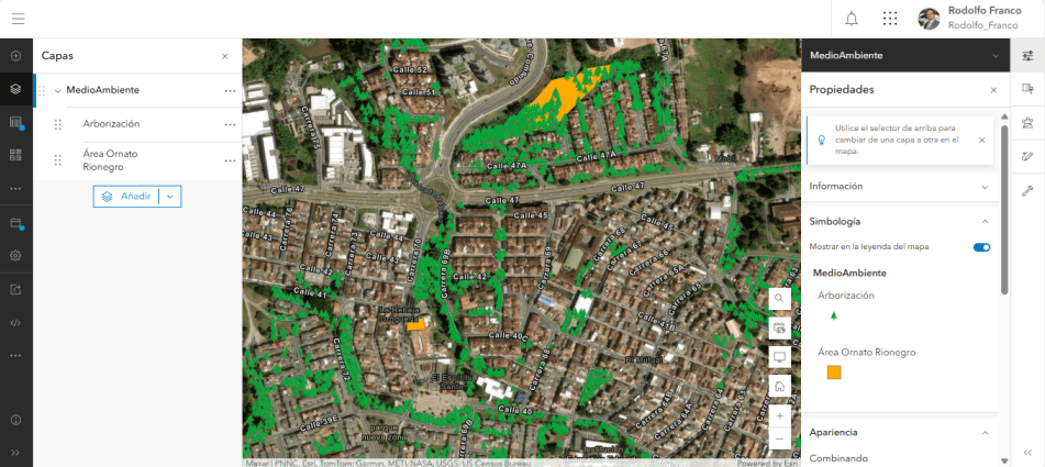 A través de un geoservicio del Modelo Geográfico de Rionegro, MGeoRio, se puede visualizar información del arbolado y ornato del municipio.