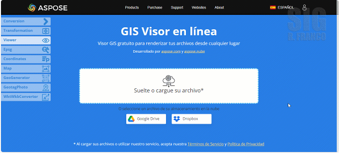 Es un geovisor que existe hace muchos años, pero que renovó su interfaz. Admite archivos shp, GML2, GML3, Kml, GeoJASON, gpx, wkt, csv