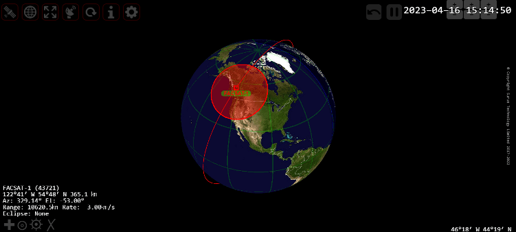 FACSAT 2 fue lanzado por la compañía SPACE X el 15 de abril de 2023 y fue puesto en una órbita helio sincrónica (SSO) a unos 500km de altitud.