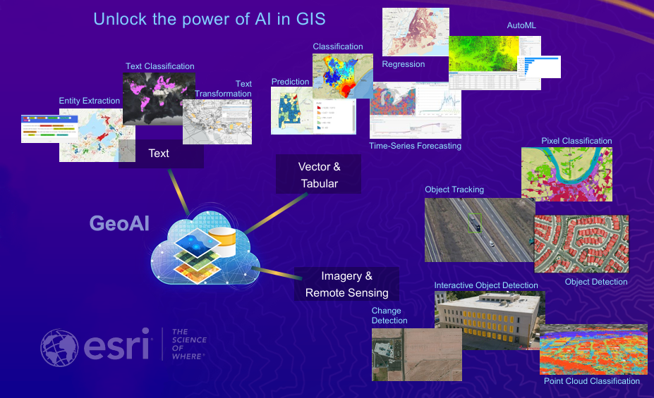 Para terminar, lo más reciente en la historia informática de los SIG se relaciona con la incorporación de modelos de inteligencia artificial para clasificación de objetos en datos ráster, predicciones en series de tiempo, automatización y mayor eficiencia en diversos geoprocesamientos, flujos de trabajo con big data, asistencia de IA para ejercicios rutinarios y más.