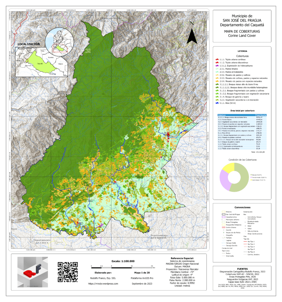 Las siguientes secuencias constituyen un ejemplo de la configuración de un layout o plancha cartográfica usando ArcGIS Pro. El ejercicio conduce al mapa que se ve a continuación:
