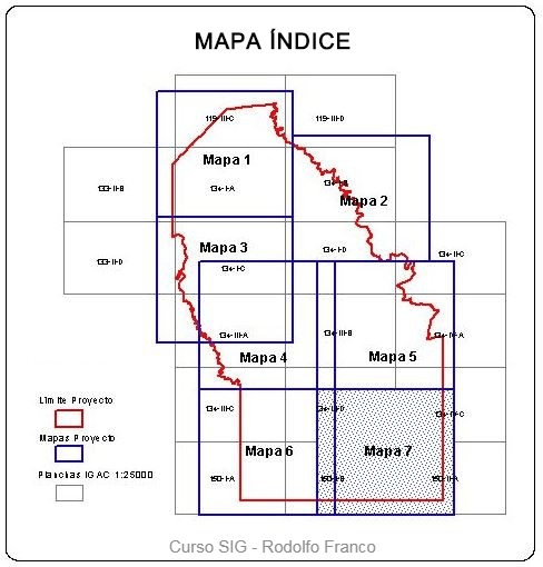 En ocasiones un mapa no muestra la totalidad de un área de estudio, sino que hace parte de un mosaico de mapas. En ese caso se presentará en cada ejemplar un pequeño mapa índice que permita identificar su cubrimiento.