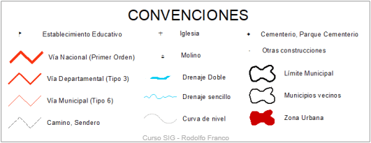 Sin importar que tan evidente sea un objeto representado en el mapa, debe estar explicado en las convenciones si hace parte de los elementos de referencia o en la leyenda si es de los temáticos.