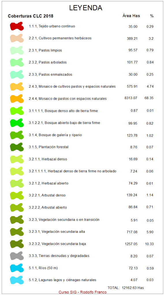 Cuando se trata de una capa poligonal se recomienda agregar las cifras de áreas totales y porcentaje del total por unidad.