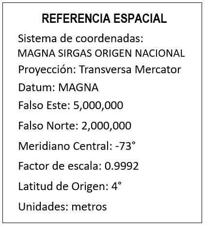 Todo mapa con coordenadas proyectadas debe incluir los valores de los parámetros del respectivo origen de coordenadas y proyección. Para el caso de coordenadas geográficas se debe indicar el esferoide correspondiente (WGS84, GRS80, etc).