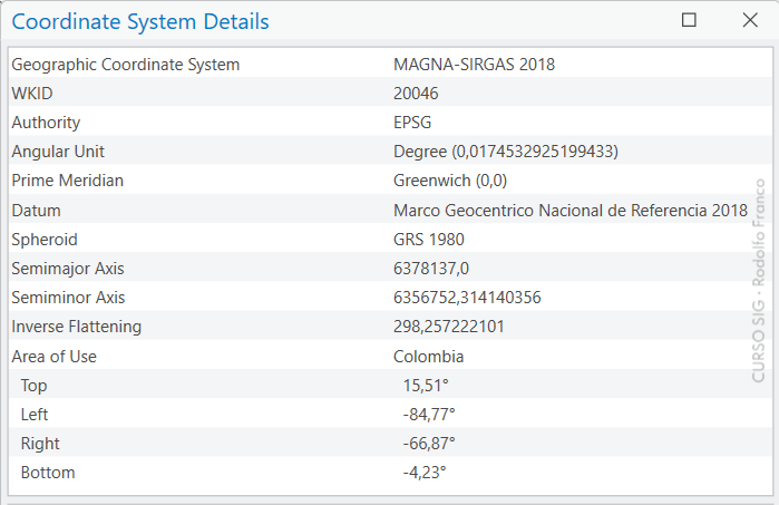 Aunque en Colombia, cuando se emplean coordenadas geográficas, se pueden usar las WGS4 obtenidas por GPS y de otras fuentes, pero para efectos de intercambio y gestión de datos se recomienda emplear las llamadas coordenadas geográficas MAGNA-SIRGAS 2018, éstas están asociadas al datum MAGNA-SIRGAS 2018 que tiene como esferoide el GRS80. Si bien el esferoide GRS80 y WGS84 tienen una diferencia ínfima en su achatamiento que los hace equivalentes, la información en geográficas MAGNA-SIRGAS 2018 facilita su conversión posterior al sistema proyectado de MAGNA-SIRGAS 2018 ORIGEN NACIONAL o a los sistemas proyectados MAGNA-SIRGAS urbanos.