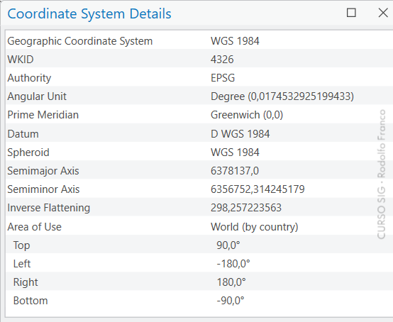 La base de datos de sistemas de coordenadas del mundo se puede consultar en https://epsg.io/
